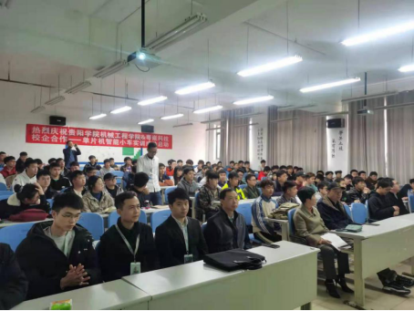 4月7日中午,公司组织18级汽车服务工程和19级机械电子工程两班员工集中在3288教室召开开班大会,公司党委书记赵忠璇、副书记张海文、副经理吴家福、教研室主任和《单片机》任课老师张滔、丁小可出席。粤嵌科技人力资源经理向俊、高级渠道经理张亮、资深开发工程师谢一峰、郭海等人参与本次开班活动。